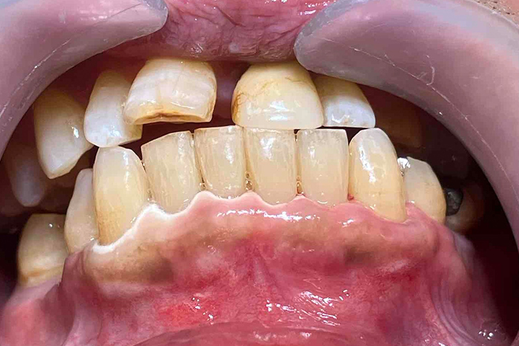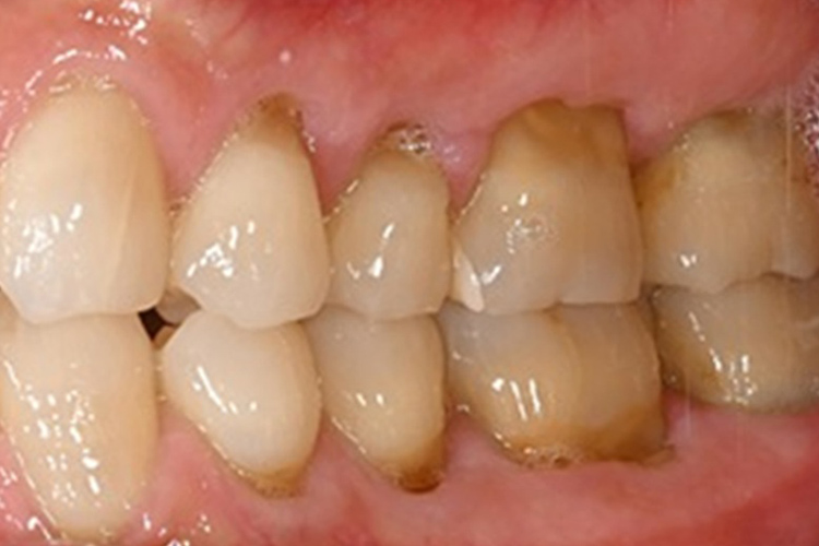 この患者様は、口腔内全体において重度の歯周病が生じており、歯磨き指導、クリーニング、Flap手術等を行ったが、歯周ポケットが深すぎるためブルーラジカル適用症例と診断し、施術を行いました。